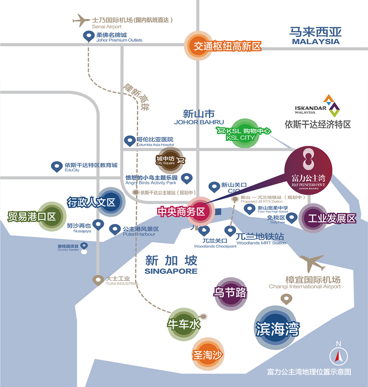 富力公主湾,一桥之隔新加坡,坐拥新马双城成熟商圈,繁华生活一步到位,轻松体