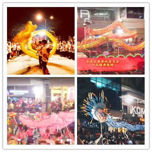 现场除了具有传统特色的舞狮舞龙之外,还有马来民族舞蹈,融合了杂技的舞大旗、踩高跷,更有别具一格的全妇女组合的粉色龙与闪耀夜空的水晶龙,让人目不暇接!