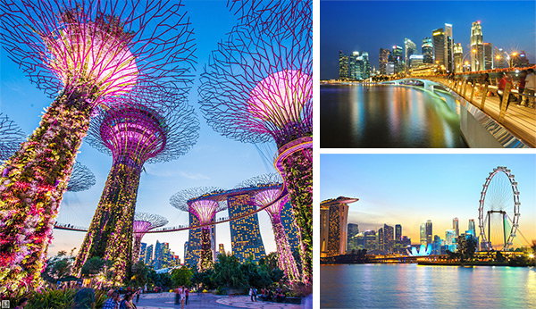 直飞新加坡,游览【滨海湾花园】并登上擎天大树,包含【花穹冷房】门票。前往【摩天轮】眺望新马夜景,乘车游览新加坡【金融中心】、【滨海艺术中心】、【鱼尾狮公园】,入住五星级酒店。